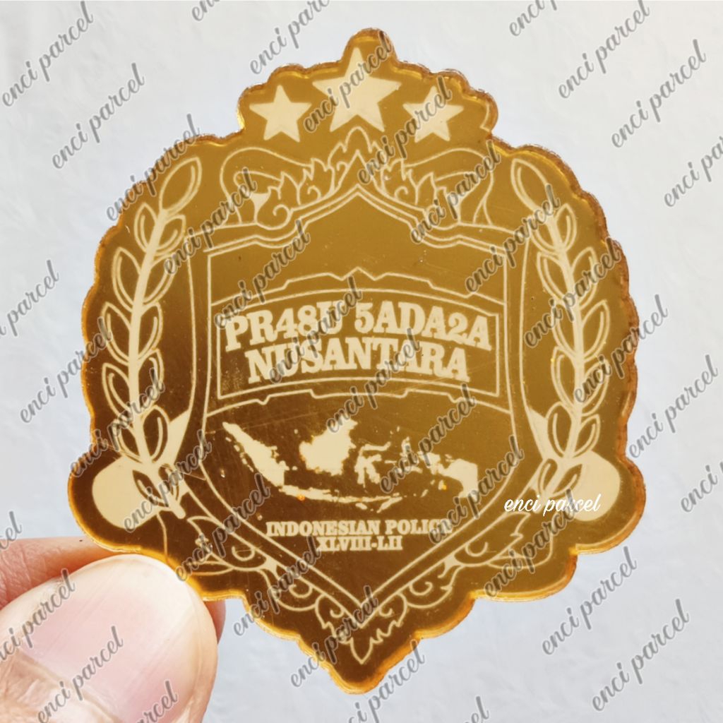 logo prabu sadara nusantara indonesia police PR48U 5ADA2A lambang polisi polri bentuk bintang padi bahan akrilik gold silver hitam triplek MDF dekorasi hiasan mahar