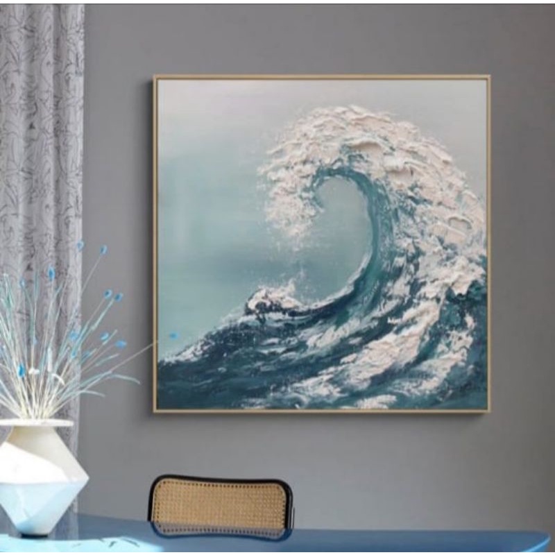 lukisan abstrak gelombang ombak art painting