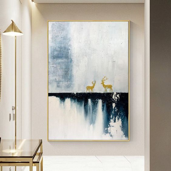 lukisan abstrak rusa gold