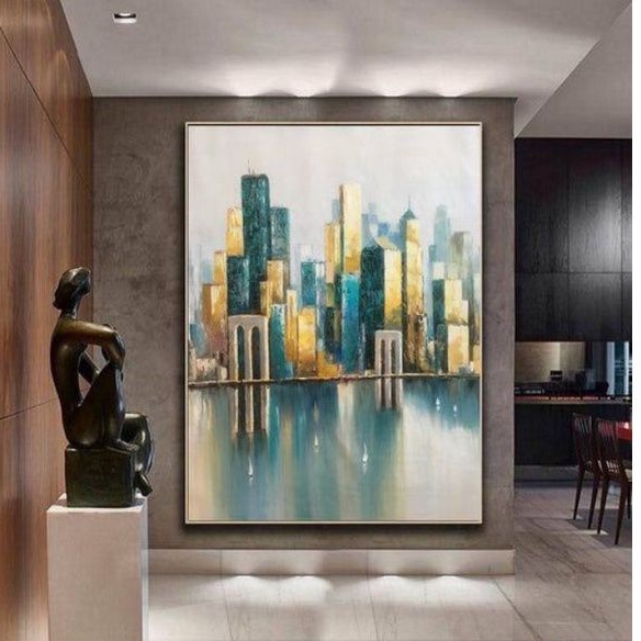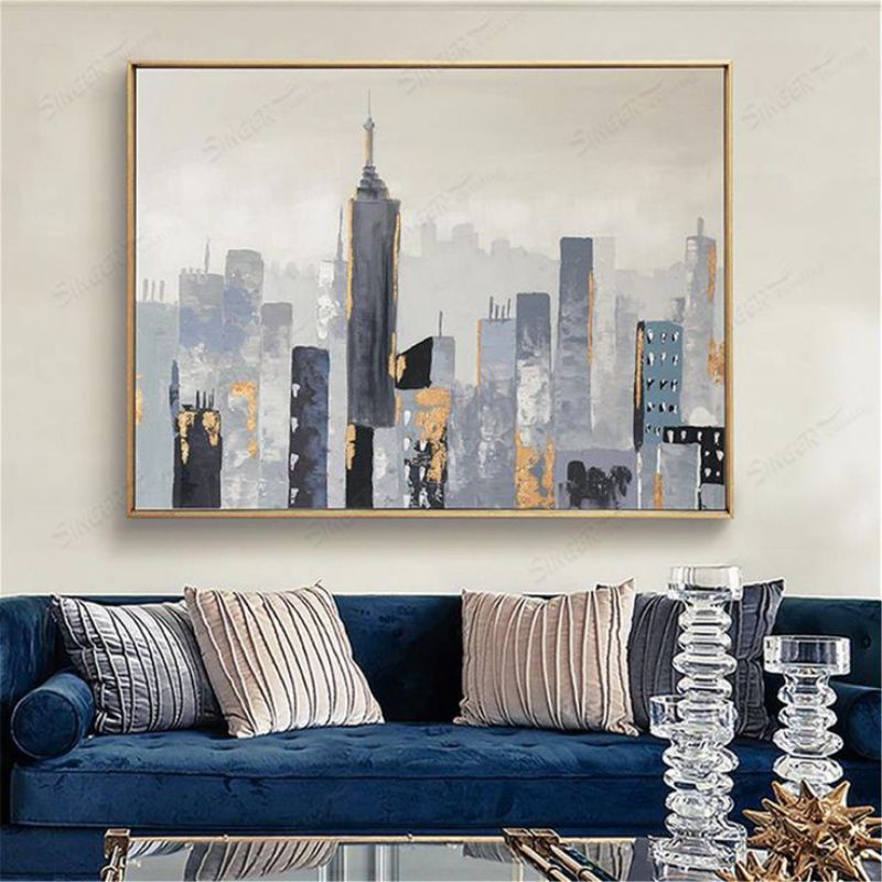 lukisan kota abstrak,lukisan city view abstrak modern+bingkai