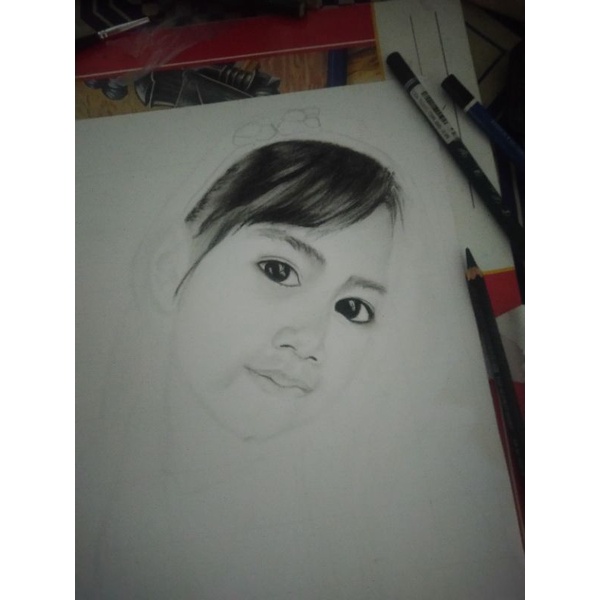lukisan pensil sketsa wajah ukuran a3 tanpa pigura