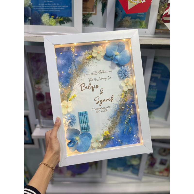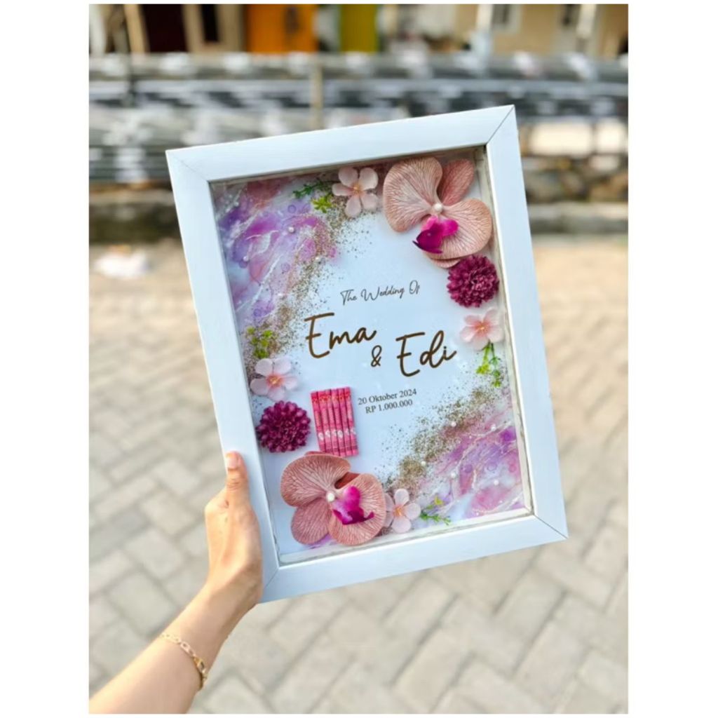 mahar pernikahan semi resin anggrek Aesthetic mewah elegan Gunungan wayang resin kuba oval artificial akrilik free lampu ukuran 40x30