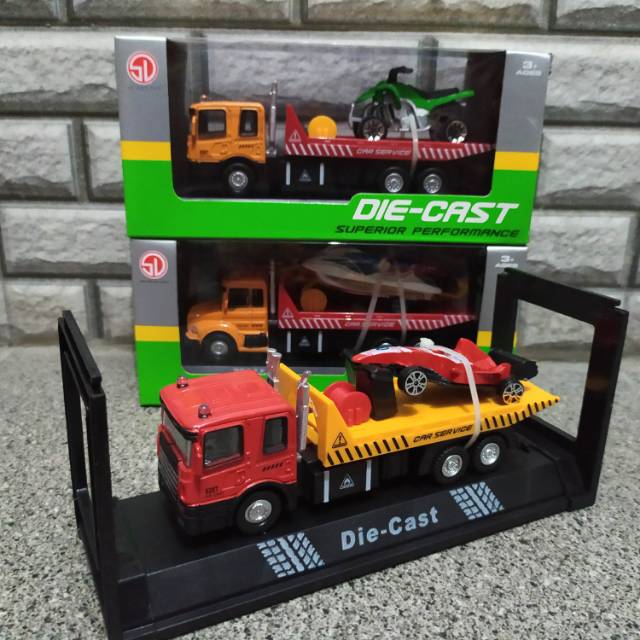 mainan diecast set truk muatan mobil formula one - miniatur formula 1 - diecast set truk mobil