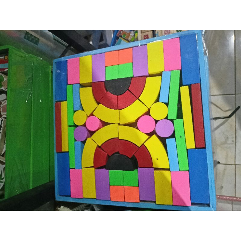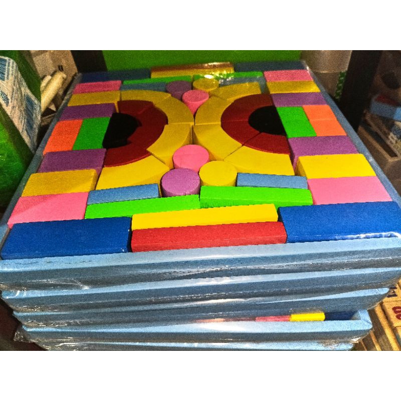 mainan kayu balok susun isi 60pcs _ full warna_ mainan kayu edukasi