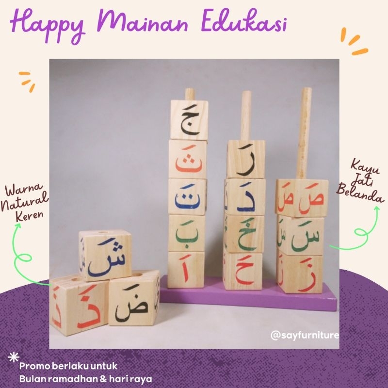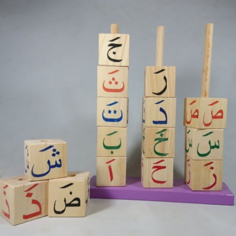 mainan kayu mainan huruf hijaiyah, mainan edukasi abjad, mainan latihan membaca untuk anak balita