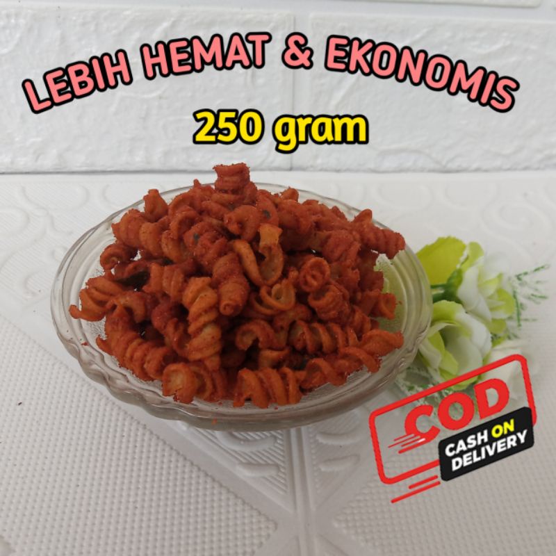 makaroni spiral makroni spiral makaroni ulir 250 gram cemilan pedas makanan ringan snack jajanan murah cemilan murah camilan