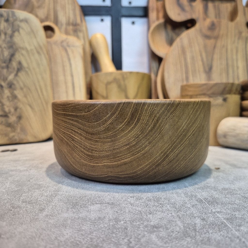 GUDANG VINTAGE Mangkuk bakso, Mangkuk kayu jati D 15 cm T 6 cm FOODGRADE Aman Untuk Makanan dan Tidak Luntur