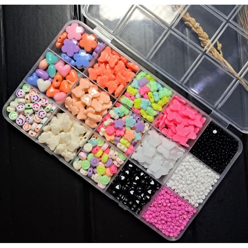 manik manik 1 set kotak/ manik 1 set 12 skat/ manik 1 set 10 sekat/ manik manik serok 1 set kotak/DIY manik 1 set aesthetic/ manik 1 set box