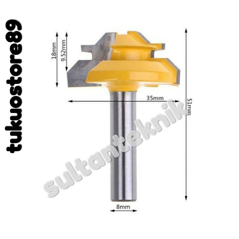 mata profil Mitter Lock AS 8mm / mata profil jointer / mata profil sambungan sudut kayu / miter bit router as 8