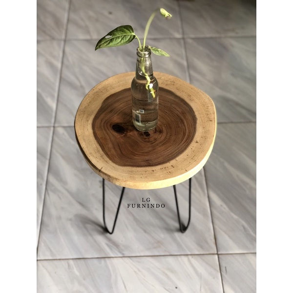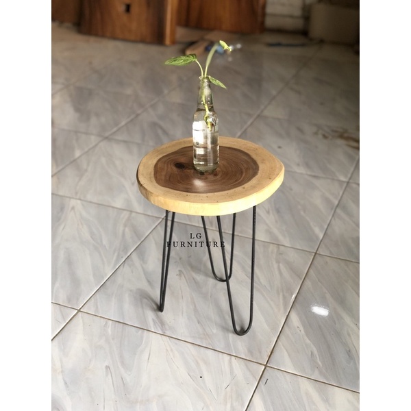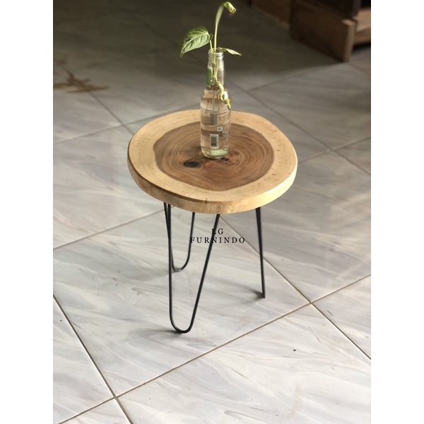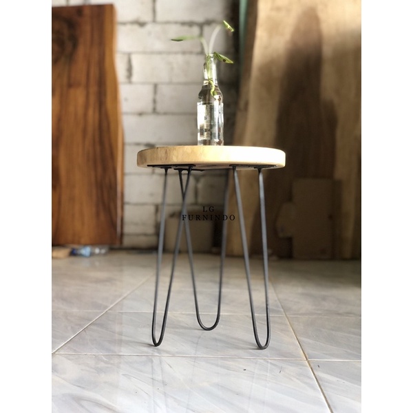 meja kayu bulat kaki besi murah
