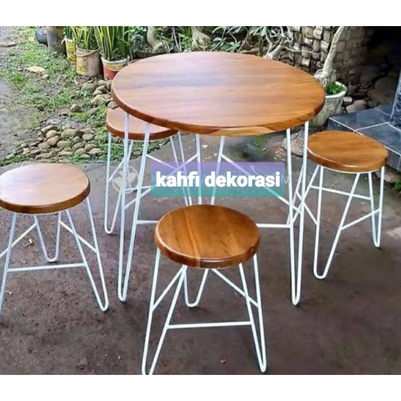 meja makan minimalis, meja kayu dan besi, meja cafe
