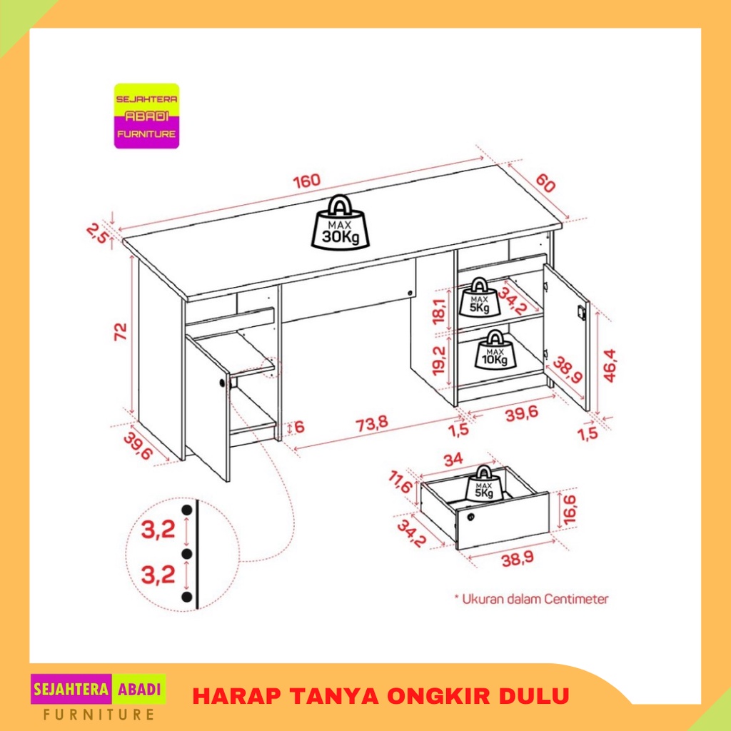meja tulis besar 1 biro, meja kerja, meja kantor ELIT DK 160 prodesign