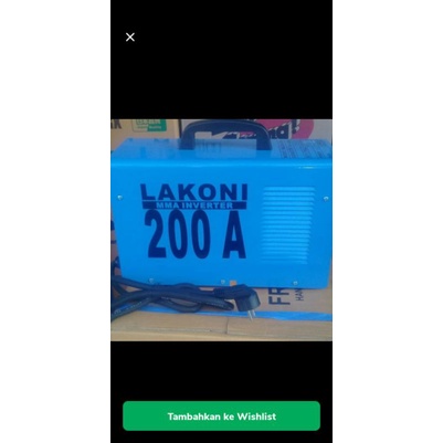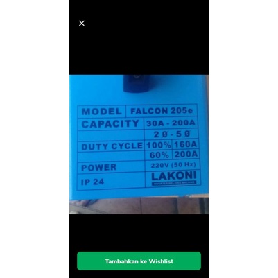 mesin trafo las lakoni 200a mesin las inverter falcon 205e sale stokTrafo las 200 Lakoni GARANSI RESMI LAKONI100% ORIGINAL PRODUCTHEAVY DUTYSPESIFIKASI: Daya Listrik : 1300 - 2000 Watt Arus Output : 30 - 200