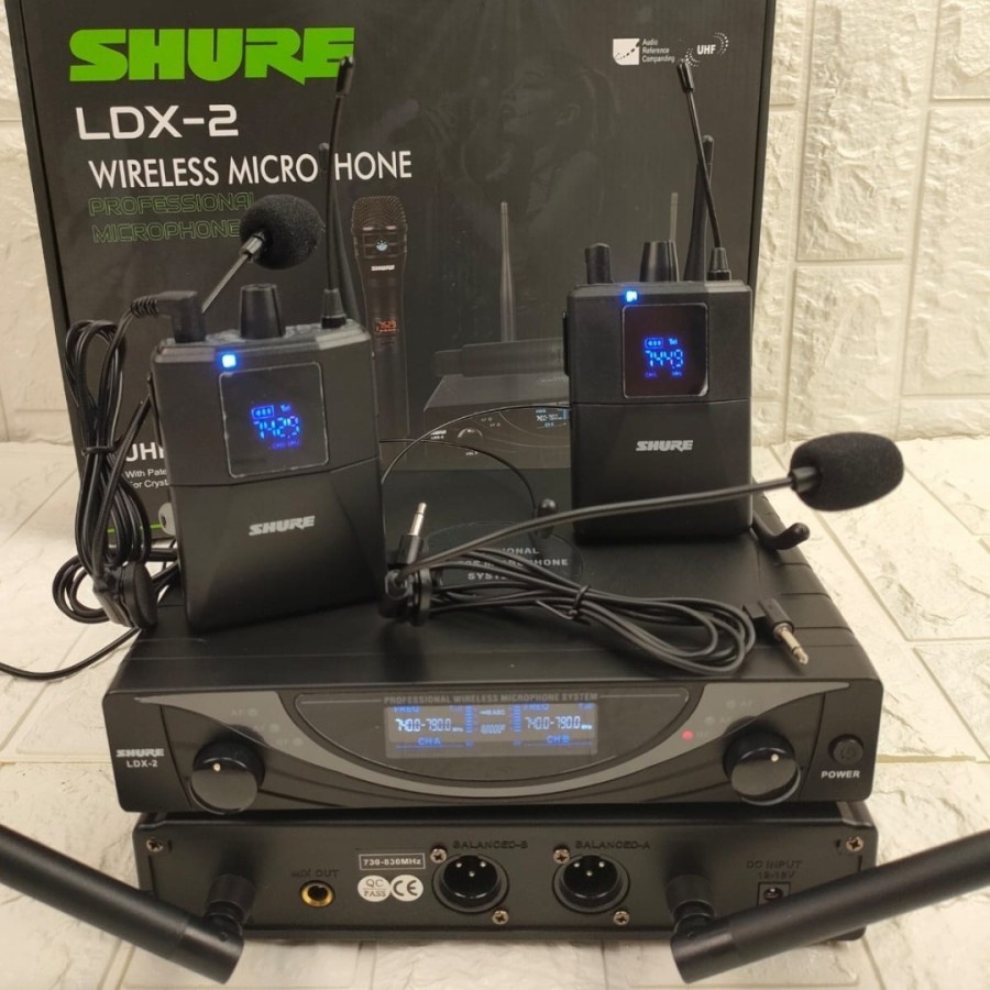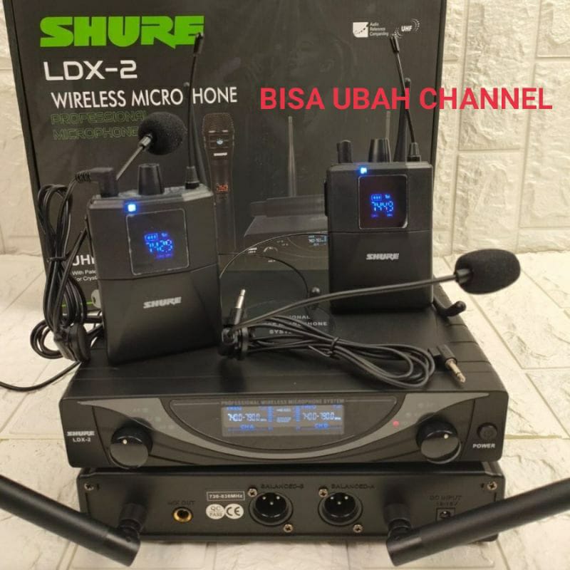 mic wireless ldx2 ldx 2 pegang + clip on + headset multi channel