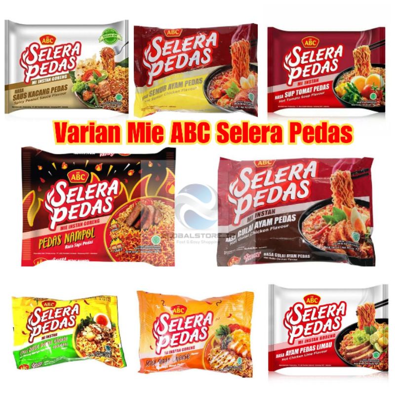 mie abc varian rasa selera pedas rasa gulai ayam pedas /abc tomat pedas /abc mie goreng pedas nampl / saus kacang pedas/garlic butter/mayo cheese/pedas limau/gurimi goreng/gurimi kaldu ayam