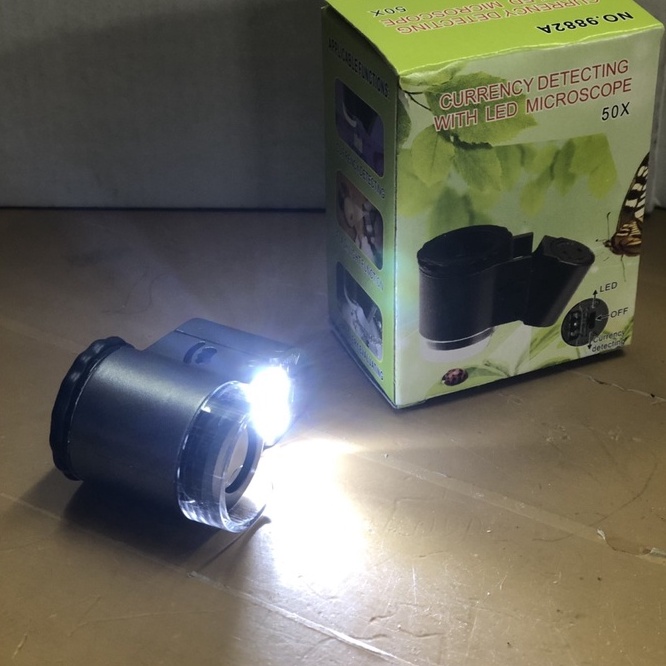 mikroskop microscope kaca pembesar loop lup Kaca Magnifier Glass Mini zoom 50X dengan lampu LED