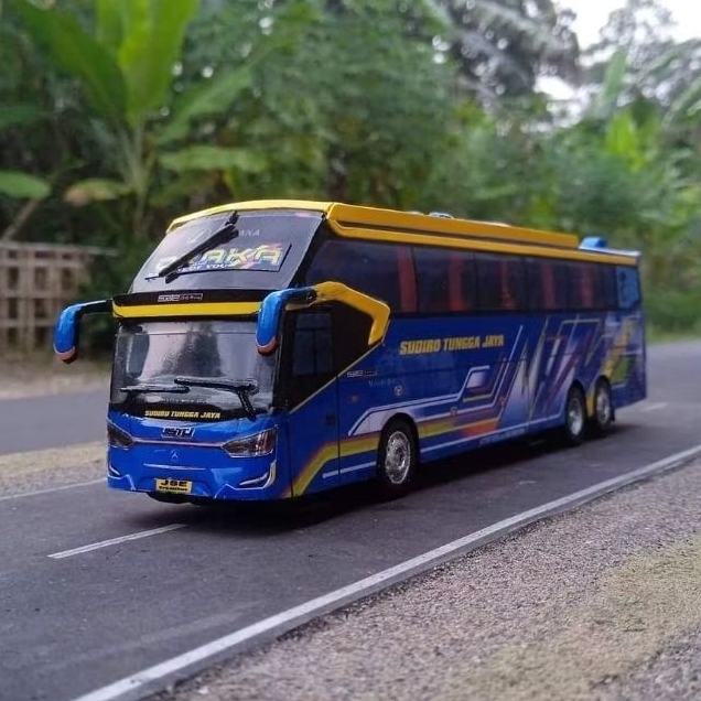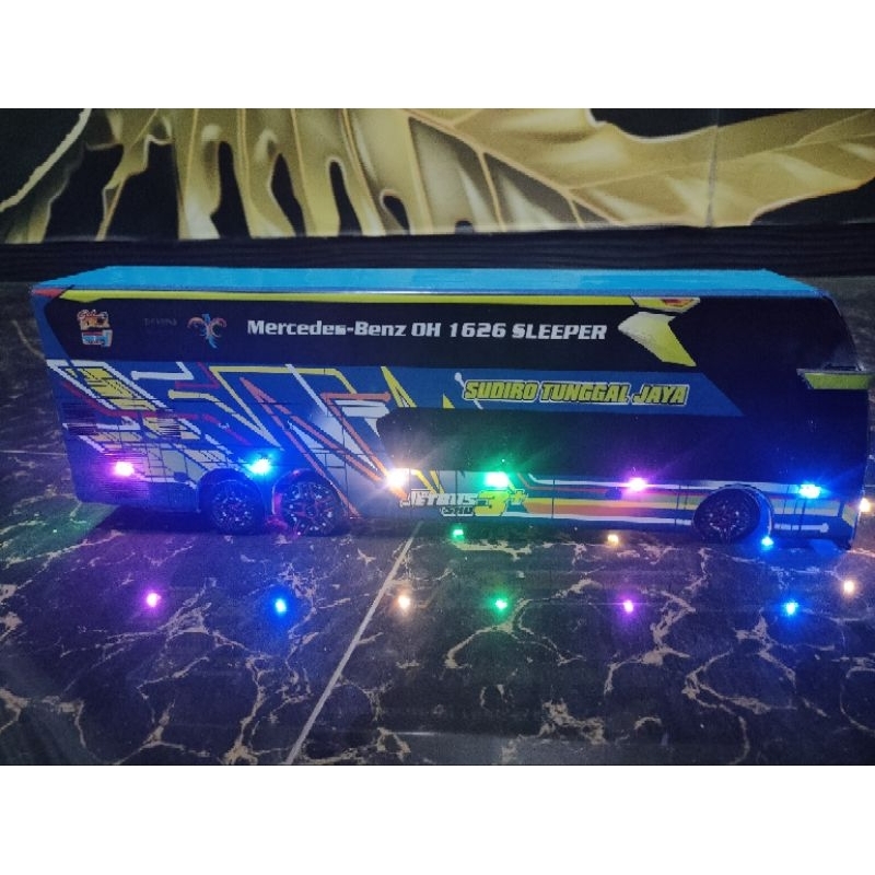 miniatur bus Stj draka biru sudiro tunggal jaya jet bus doubell dekker full fariasi lampu leed kelap kelip