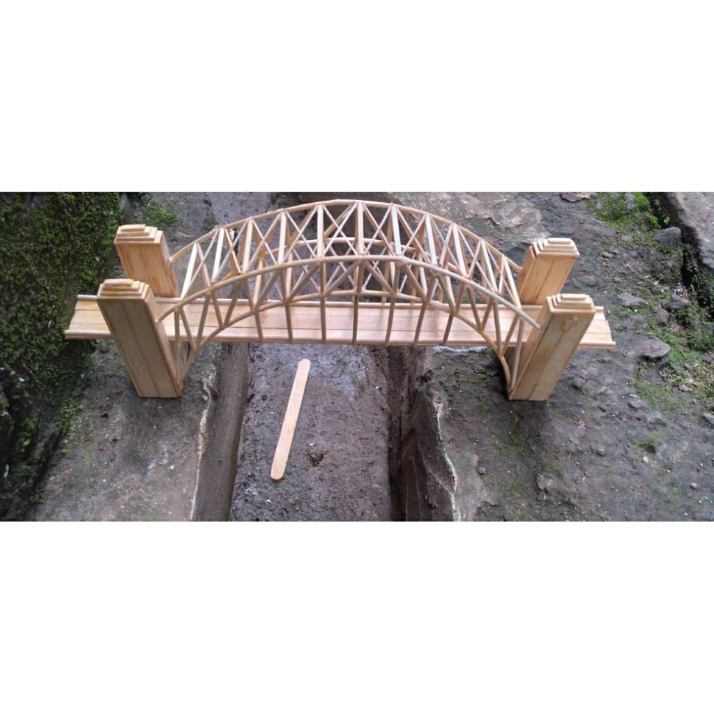miniatur jembatan rangka dari stick eskrim dan tusuk sate