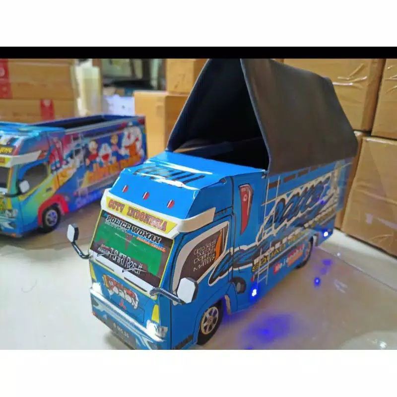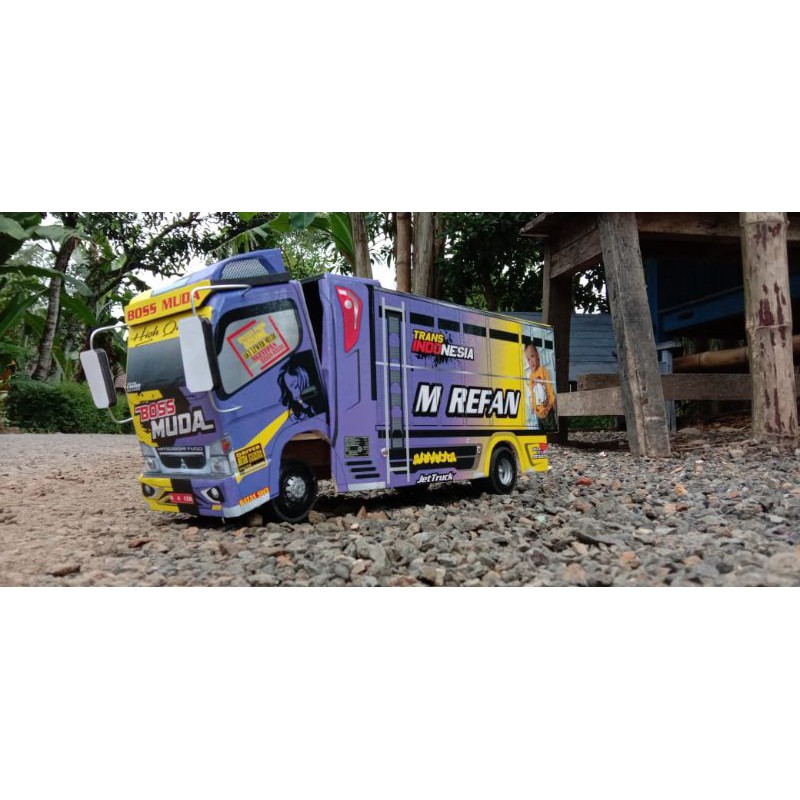 miniatur truck oleng berlapis sticker finishing clear full cutting. bisa desain sesui foto/tulisan