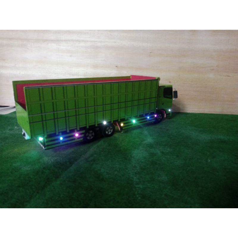 miniatur truk oleng tronton hino full lampu