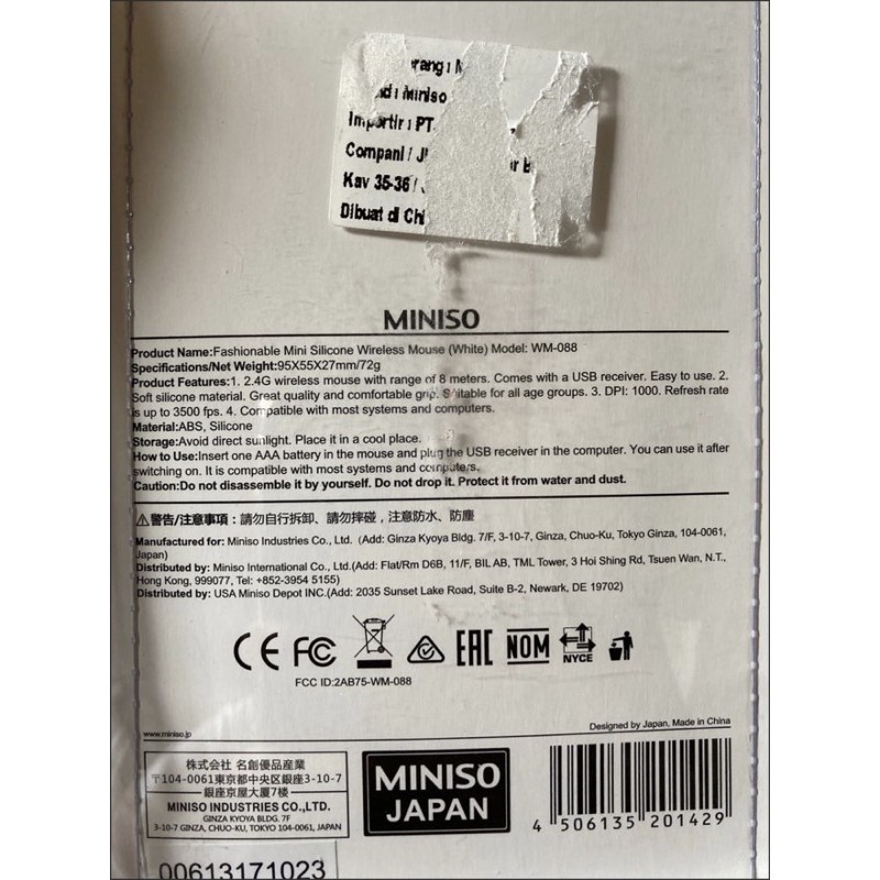 miniso white wireless mouse / mouse putih miniso