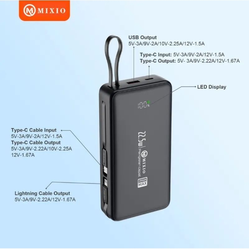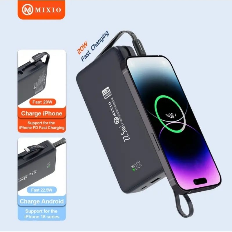 mixio MP 10 powerbank 20.000 mAh 22.5W with kabel fast charging mixio mp10 power bank