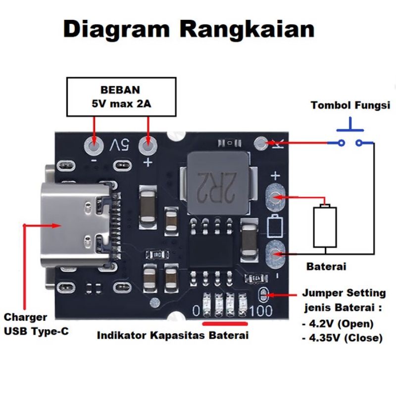 modul powerbank type C 2A
