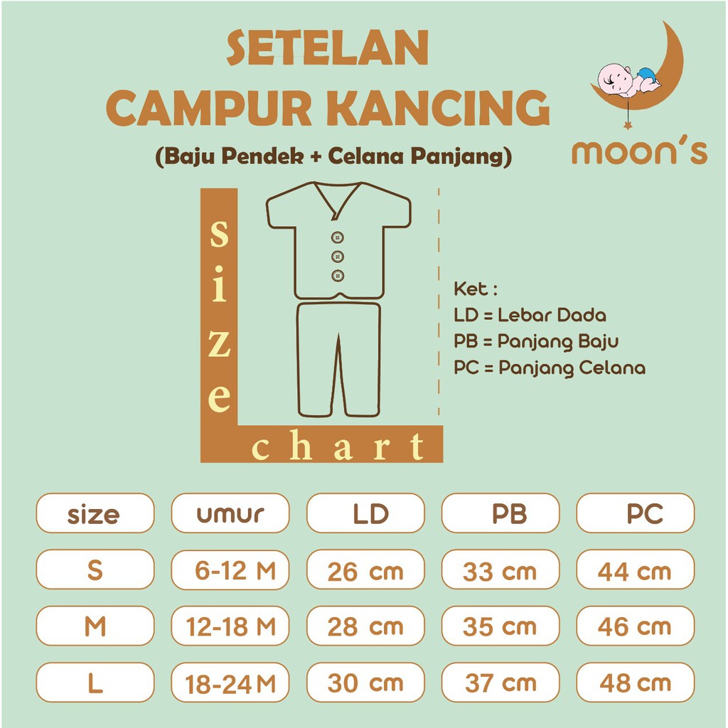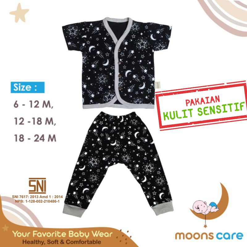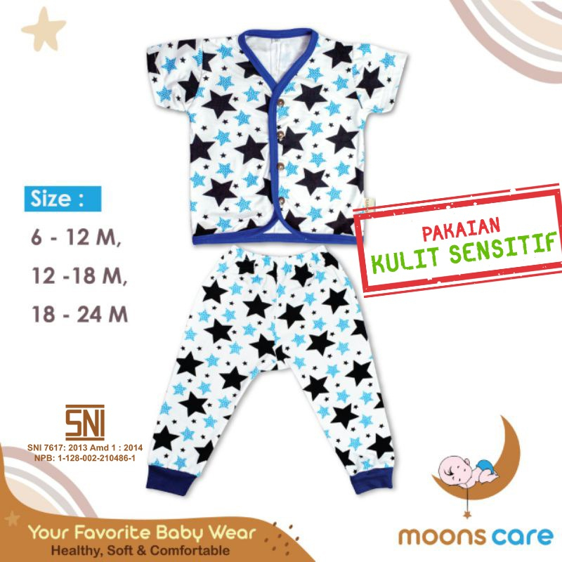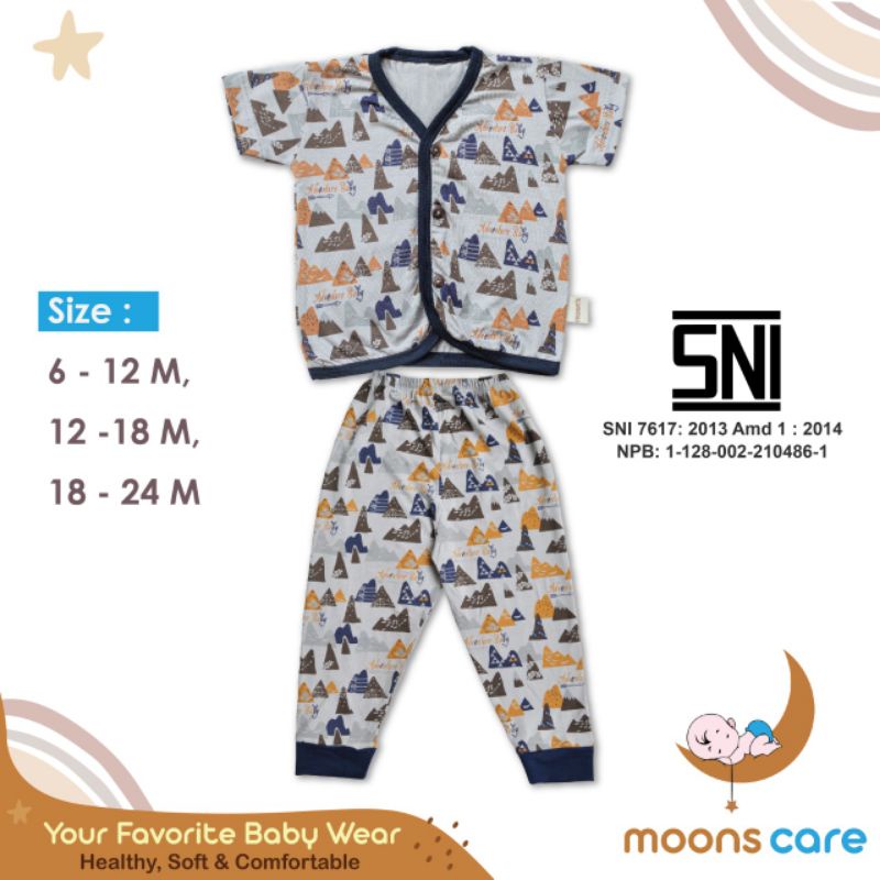 moons care SNI Stelan Kancing Campur Motif Premium | Setelan Baju Pendek Celana Panjang Piyama Bayi