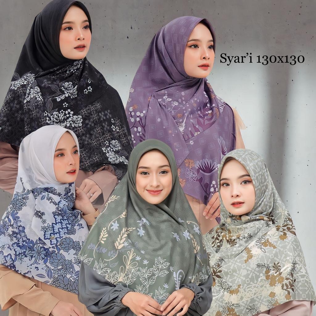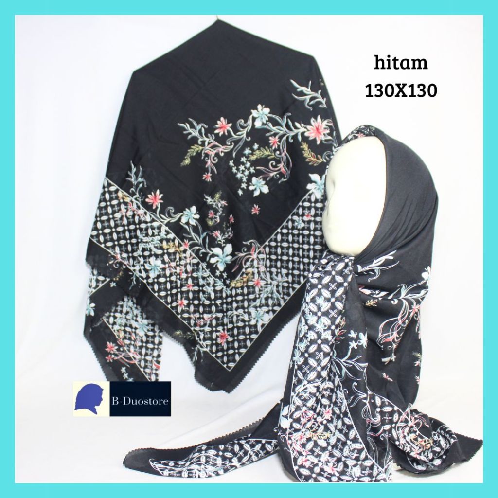 ms2. jilbab segi empat jumbo ukuran 130 x 130, kerudung segi empat motif, hijab segi empat, jilbab motif bisa seragam