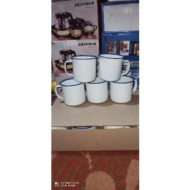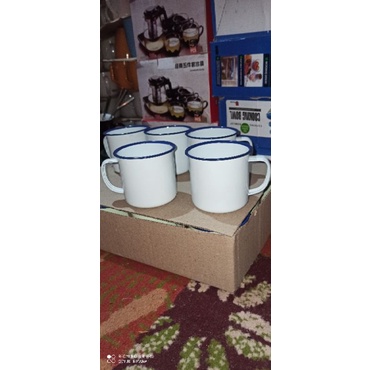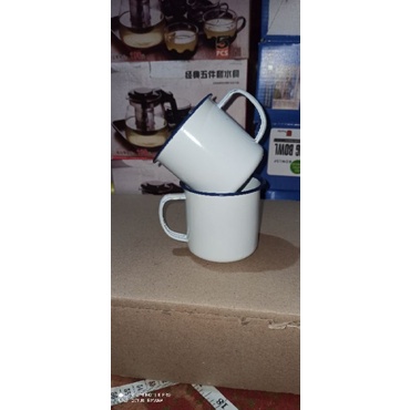 mug enamel jadul polos putih