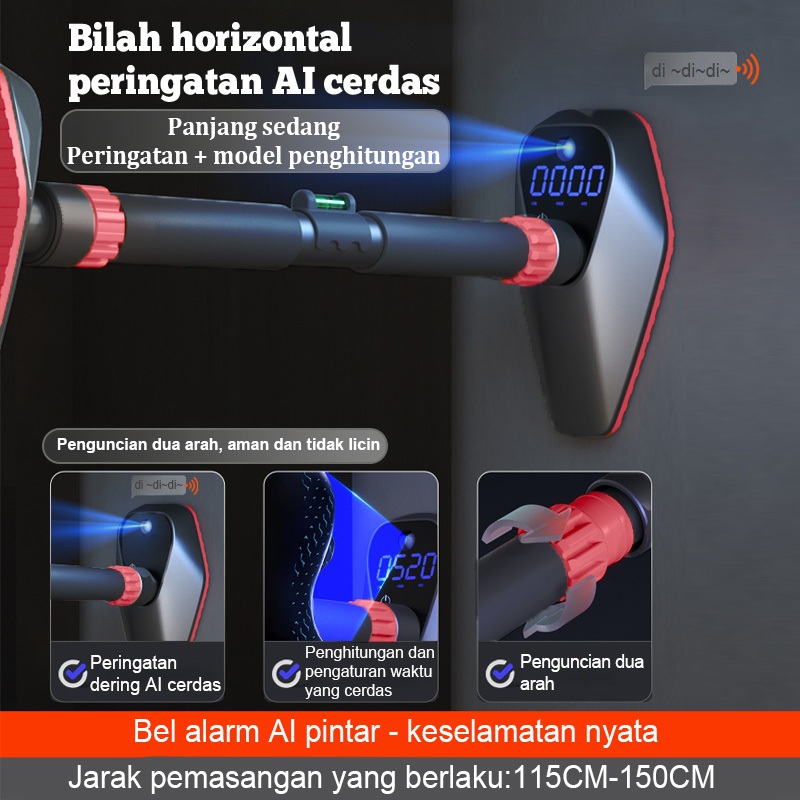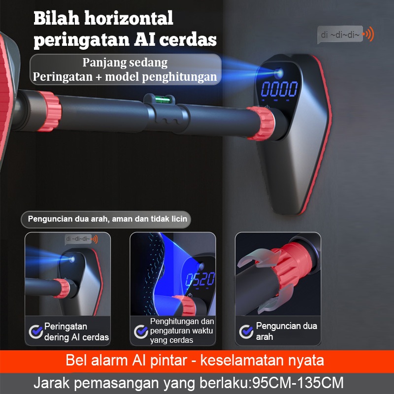 multi-fungsi Adjustable Pull up Bar Alarm Otomatis Peringatan AI yang cerdas-Layar Smart LED*/Chin Up Bar Push Up Bar/Alat olahraga Rumahan/Heavy Steel Muscle Training Equipment