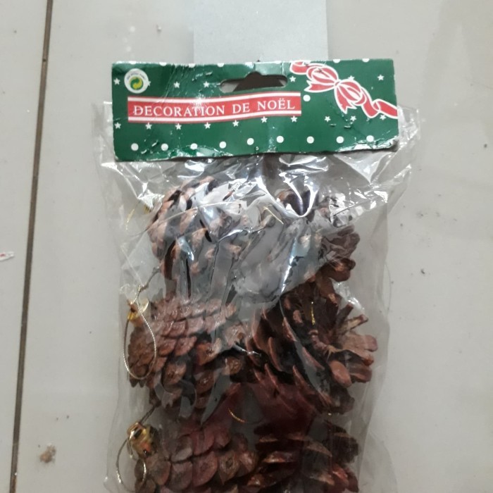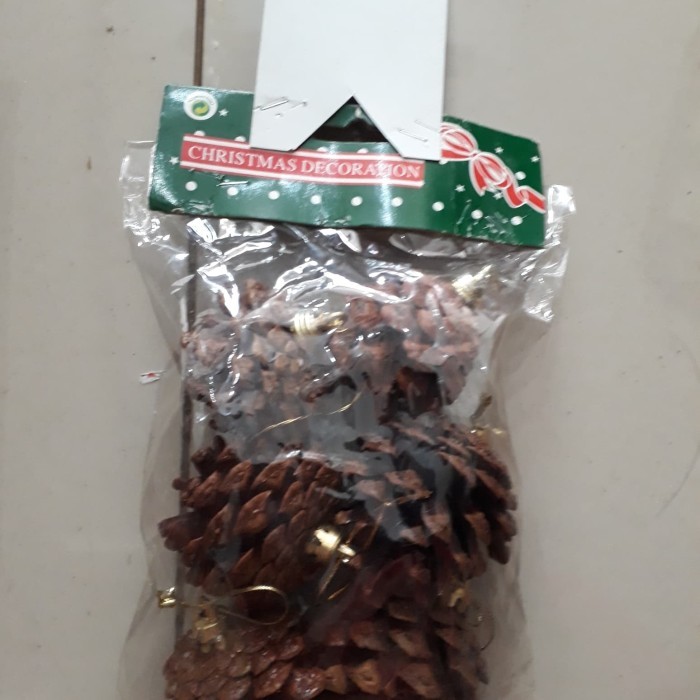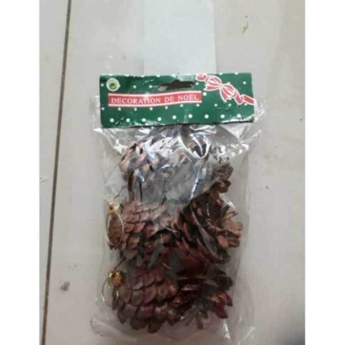 natal - Hiasan Dekorasi Natal Ornamen Bola Buah Pinus Cemara Isi 6 Pcs