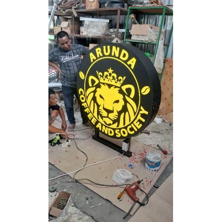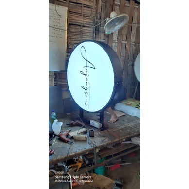 neon box bulat 100cm x 2 sisi dengan bracket dinding