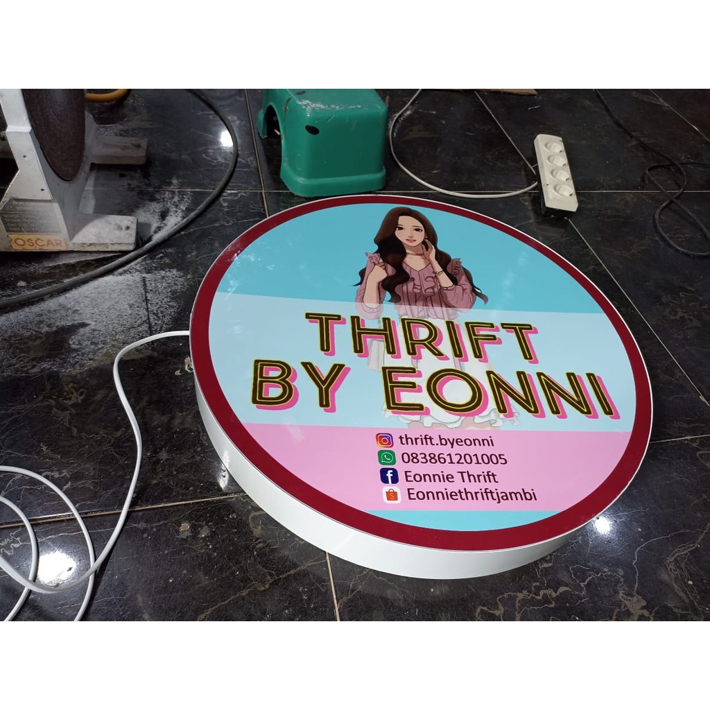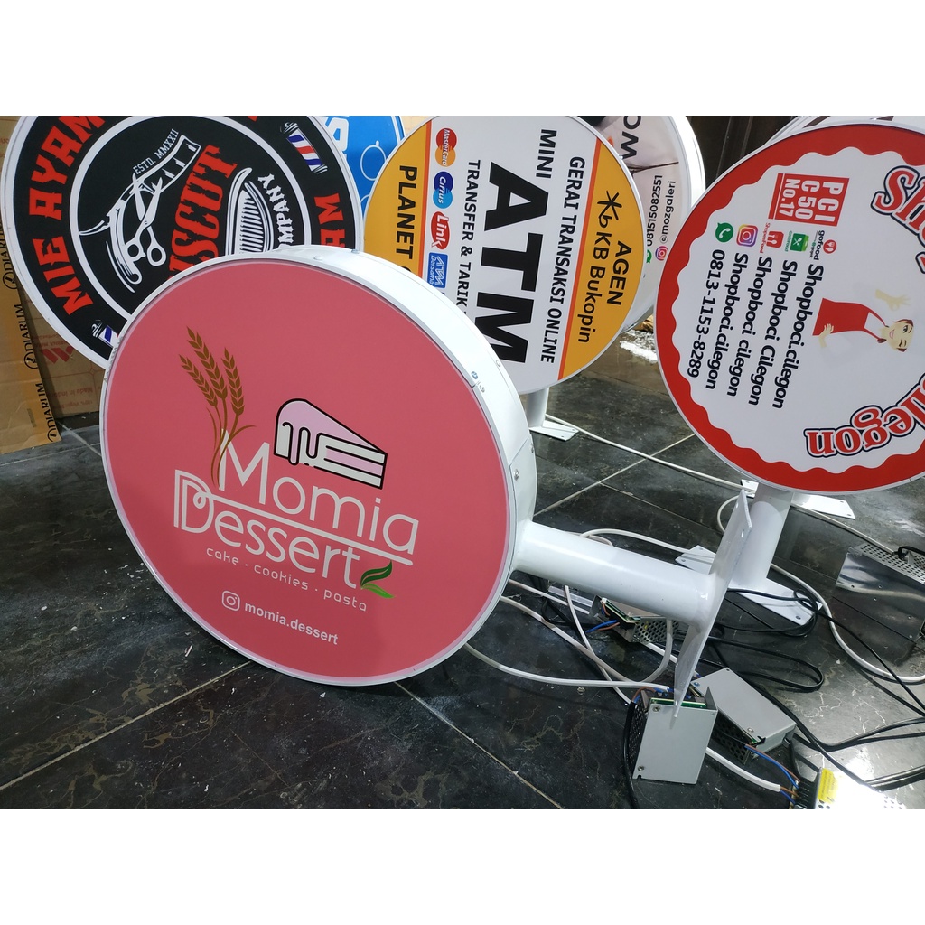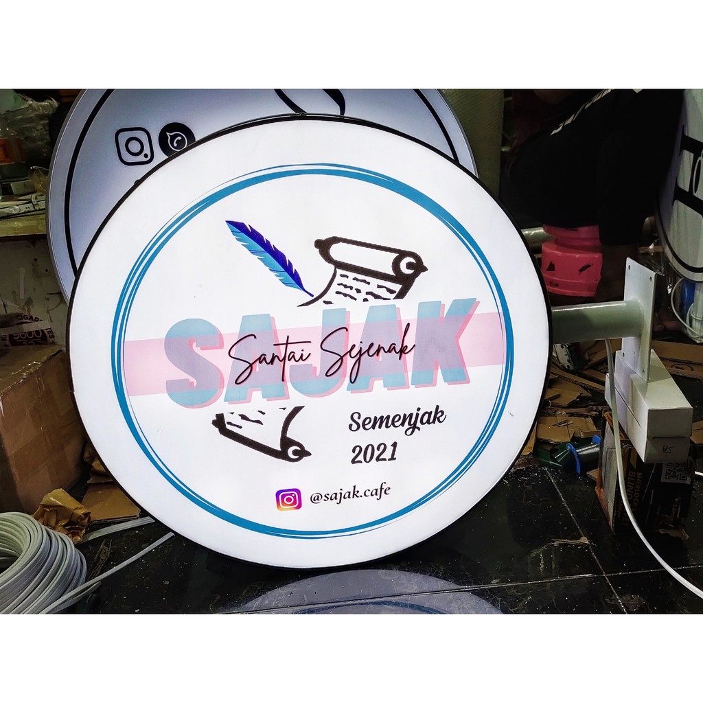neon box bulat 40 & 50 cm + bracket 2 sisi