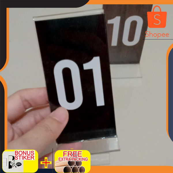 nomor meja mini - no meja akrilik - desk sign - coklat gelap Elegan