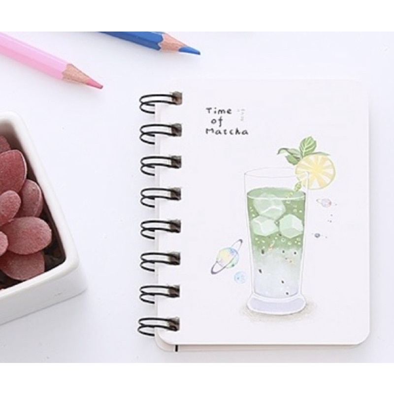 notebook A7 ring notes notepad gaya korea white green aesthetic estetik buku catatan serbaguna warna hijau putih roti melon macaron green tea soda mochi murah