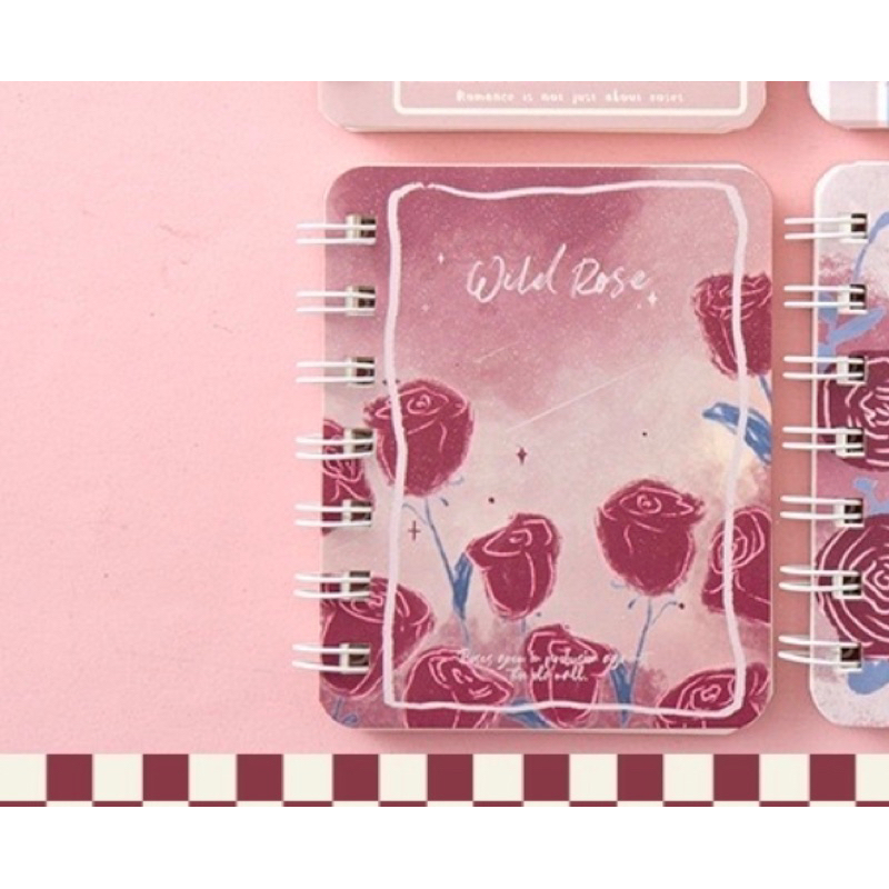 notebook a7 BERGARIS note book notes ring spiral motif bunga hati biru mawar rose red heart cute estetik aesthetic kawaii ala korea buku catatan mini kecil untuk scrapbook diy girly anak perempuan murah
