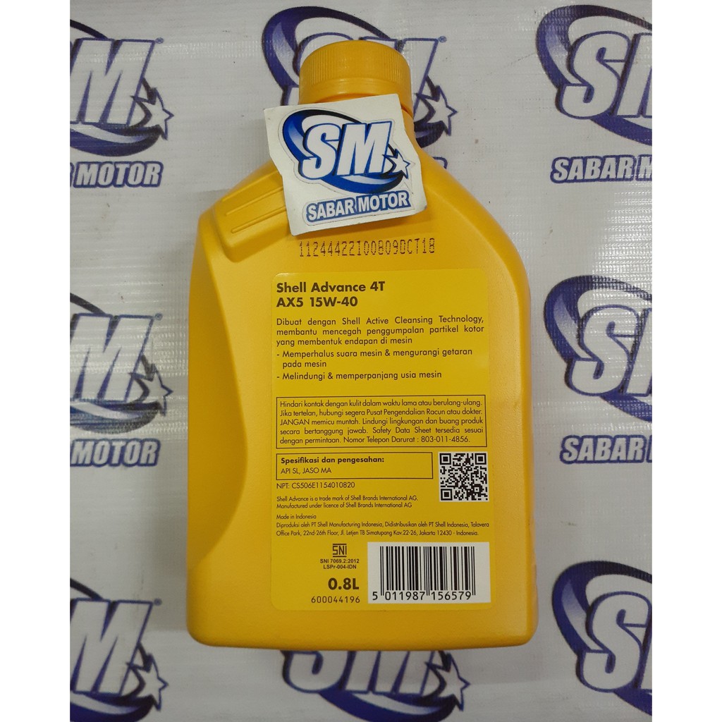 oli shell advance 15W-40 ax5 premium mineral 4T 0.8L