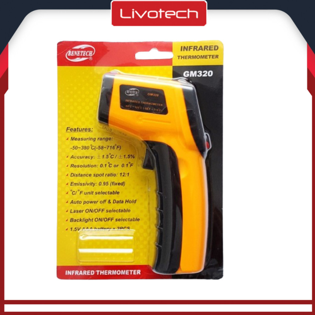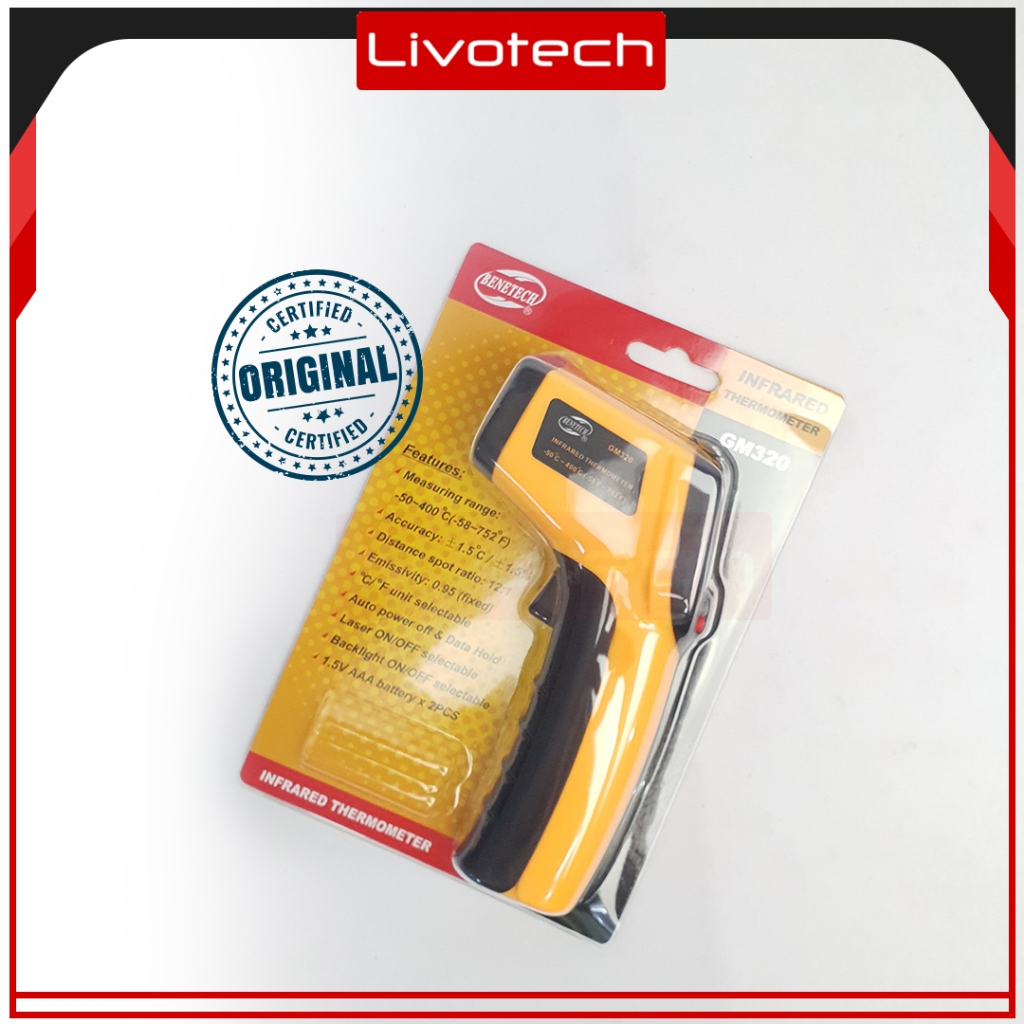 LIVO original BENETECH [UPGRADE VERSION] GM320 Termometer Digital Inframerah s.d 400C BENETECH Thermometer GM-320