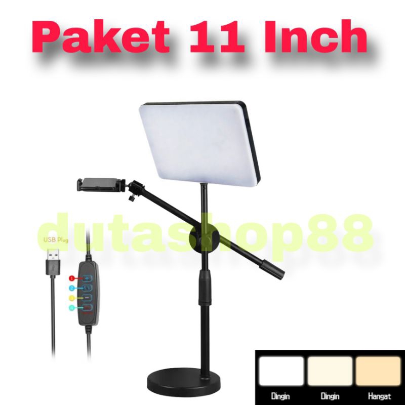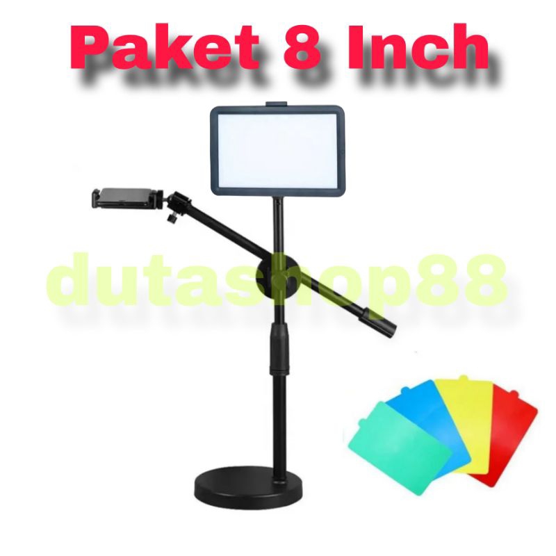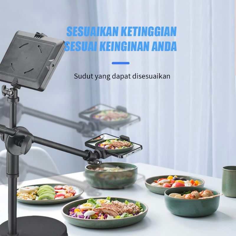 overhead phone stand phone holder bracket 360 derajat LED portable flat fill light lampu fotografi dan live