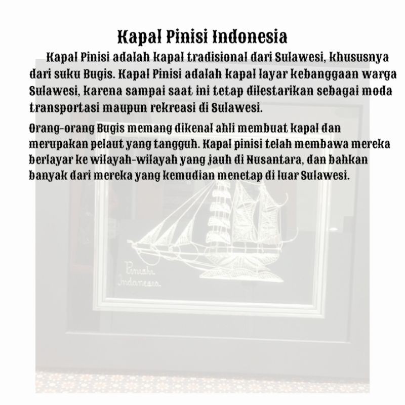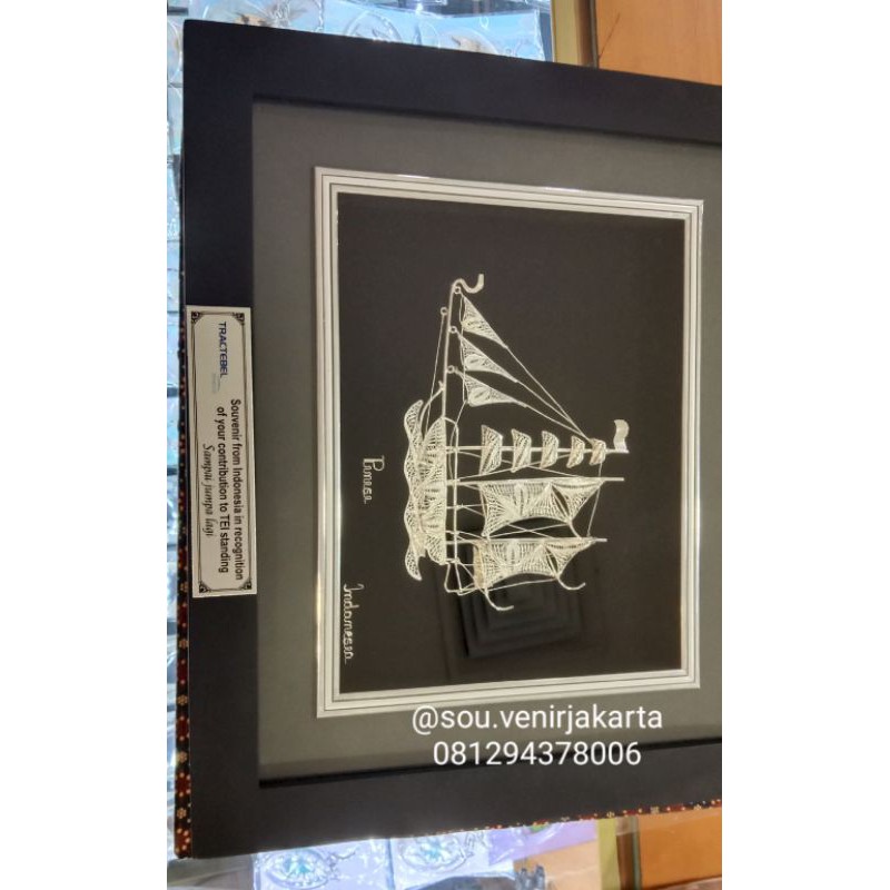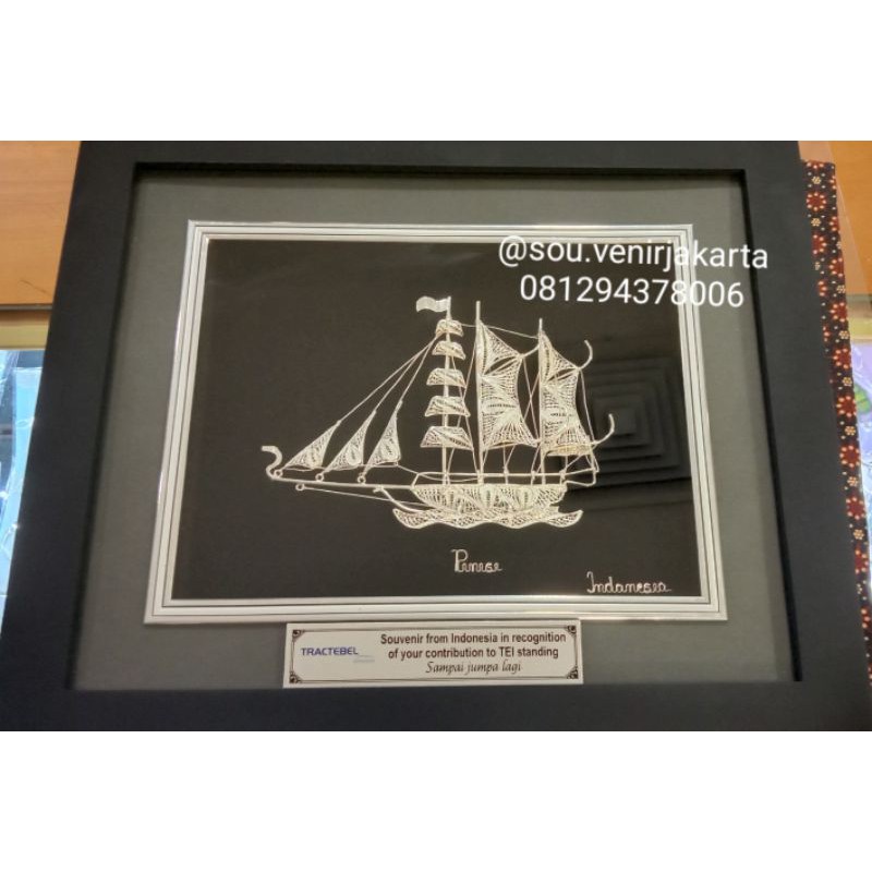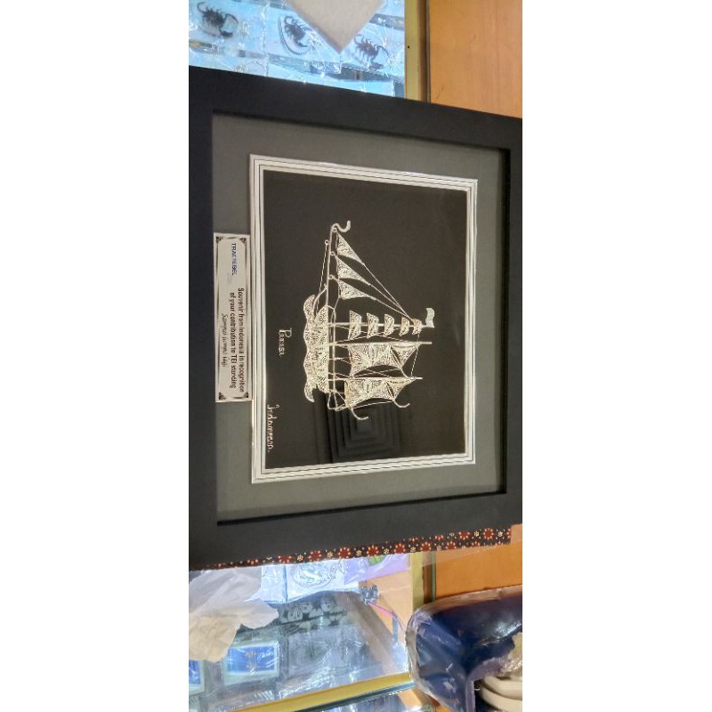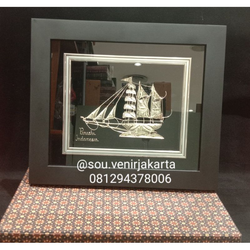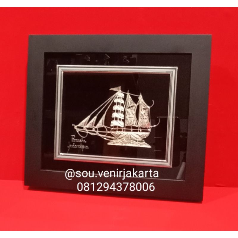 pajangan frame kapal Pinisi /miniatur kapal pinisi / plakat kapal pinisi silver / perak kapal pinisi