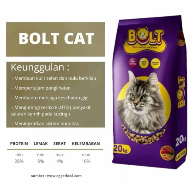 pakan kucing bolt tuna flavor 1 kg cat food makanan kucing 1 kg bolt ikan