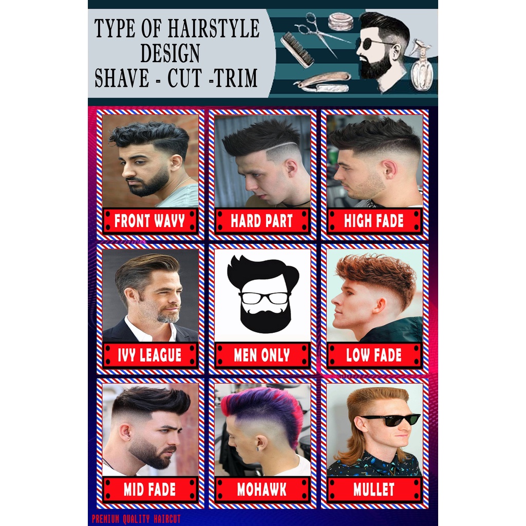 paket 3 lembar /poster pangkas rambut / Poster barbershop / Poster skin rambut / poster rambut terbaru