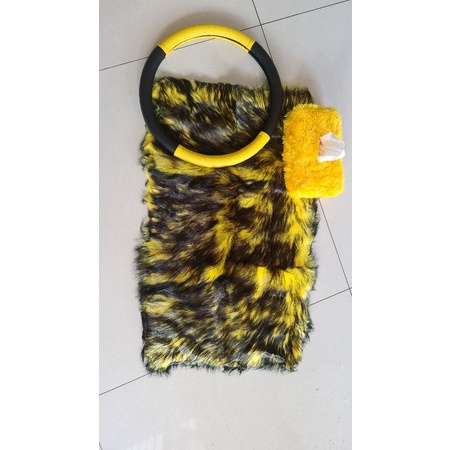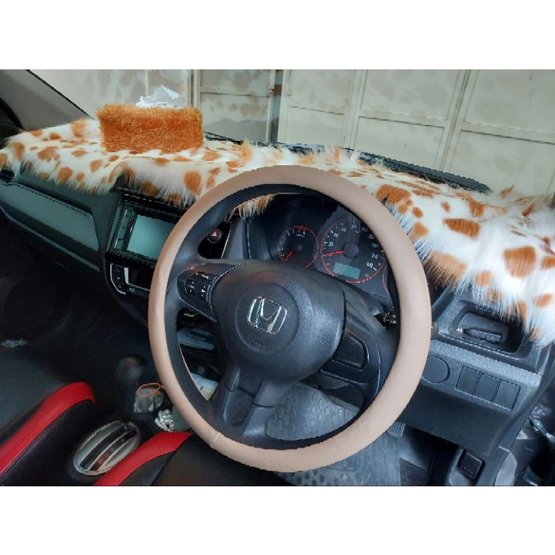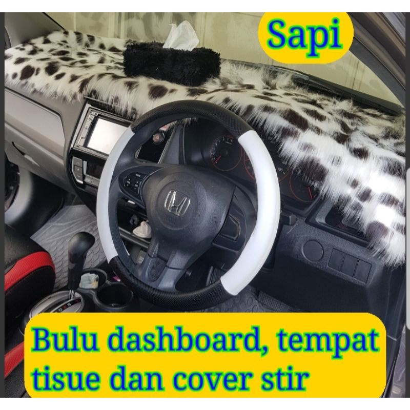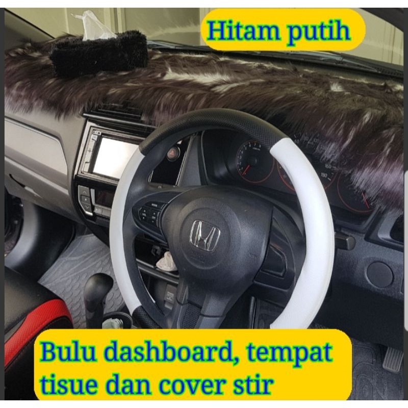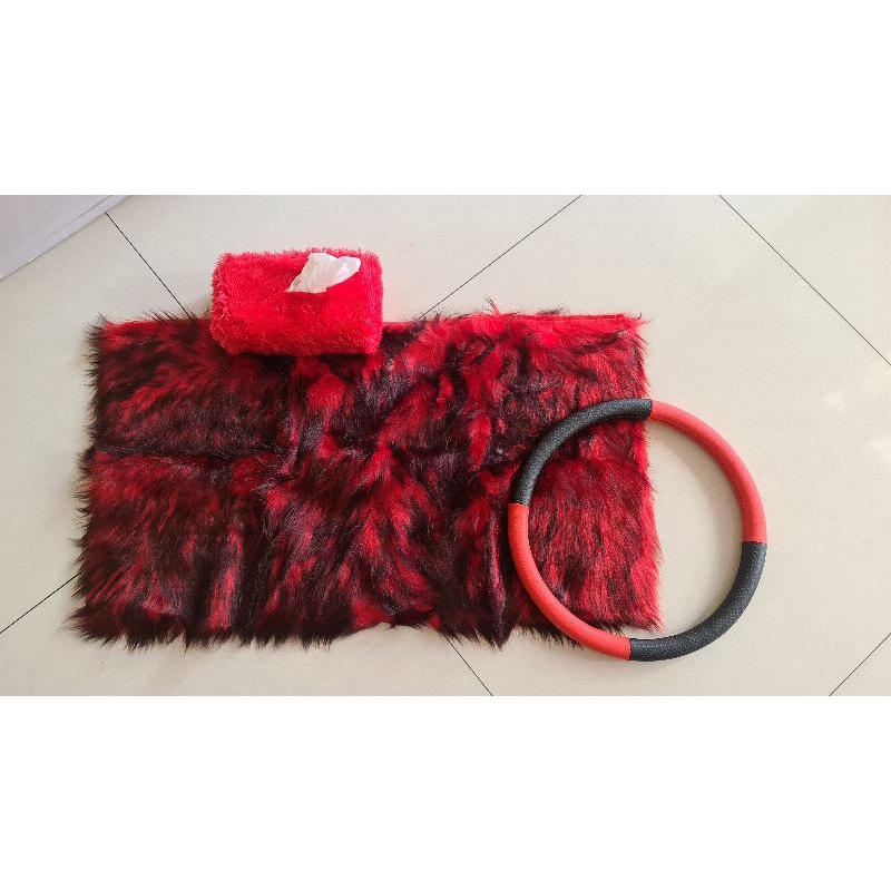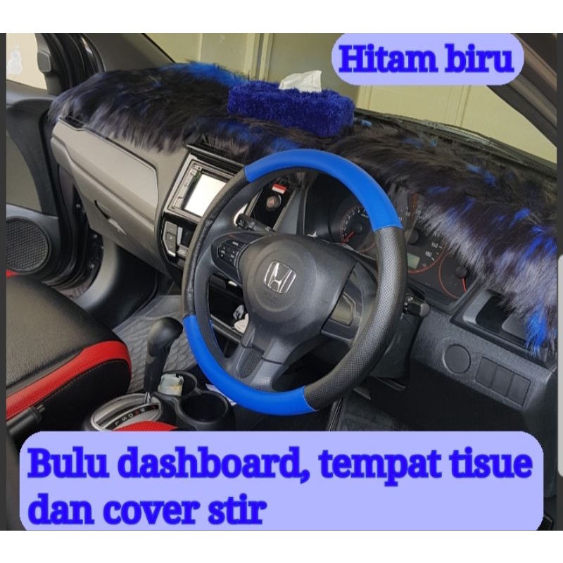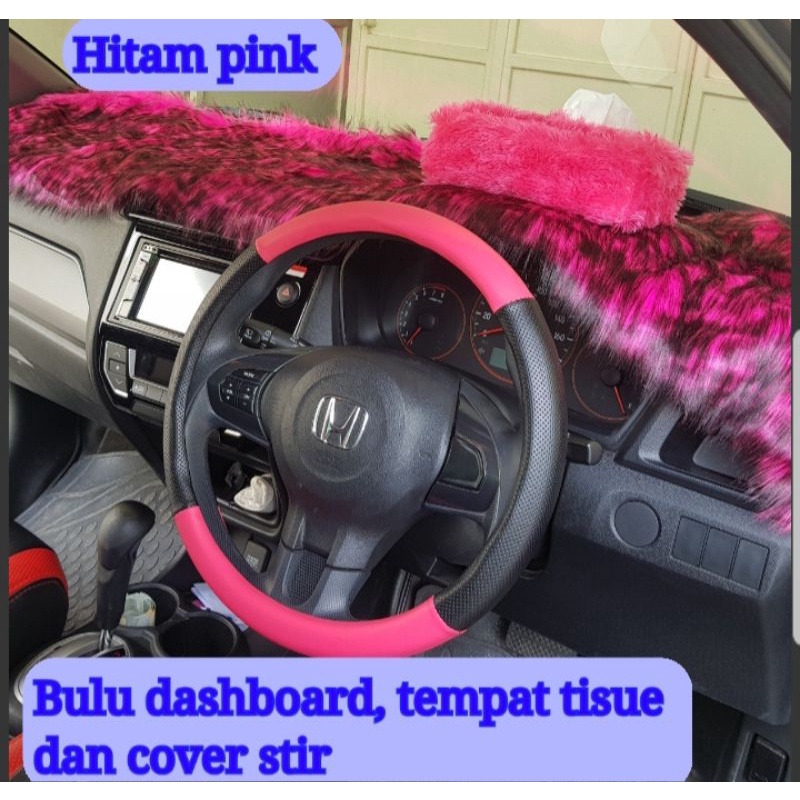 paket bulu dashboard, tempat tisue dan cover stir mobil merah hitam biru pink putih