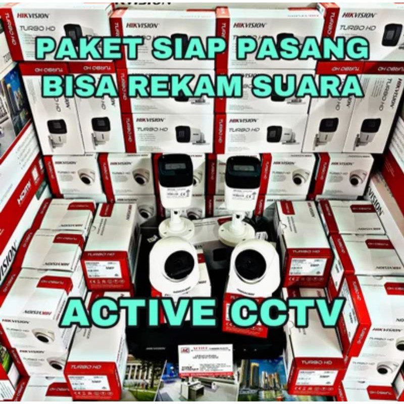 paket camera cctv 4 kamera hikvision 5mp dual light colorvu + audio build built in mic 4 channel ch bisa rekam suara 4ch