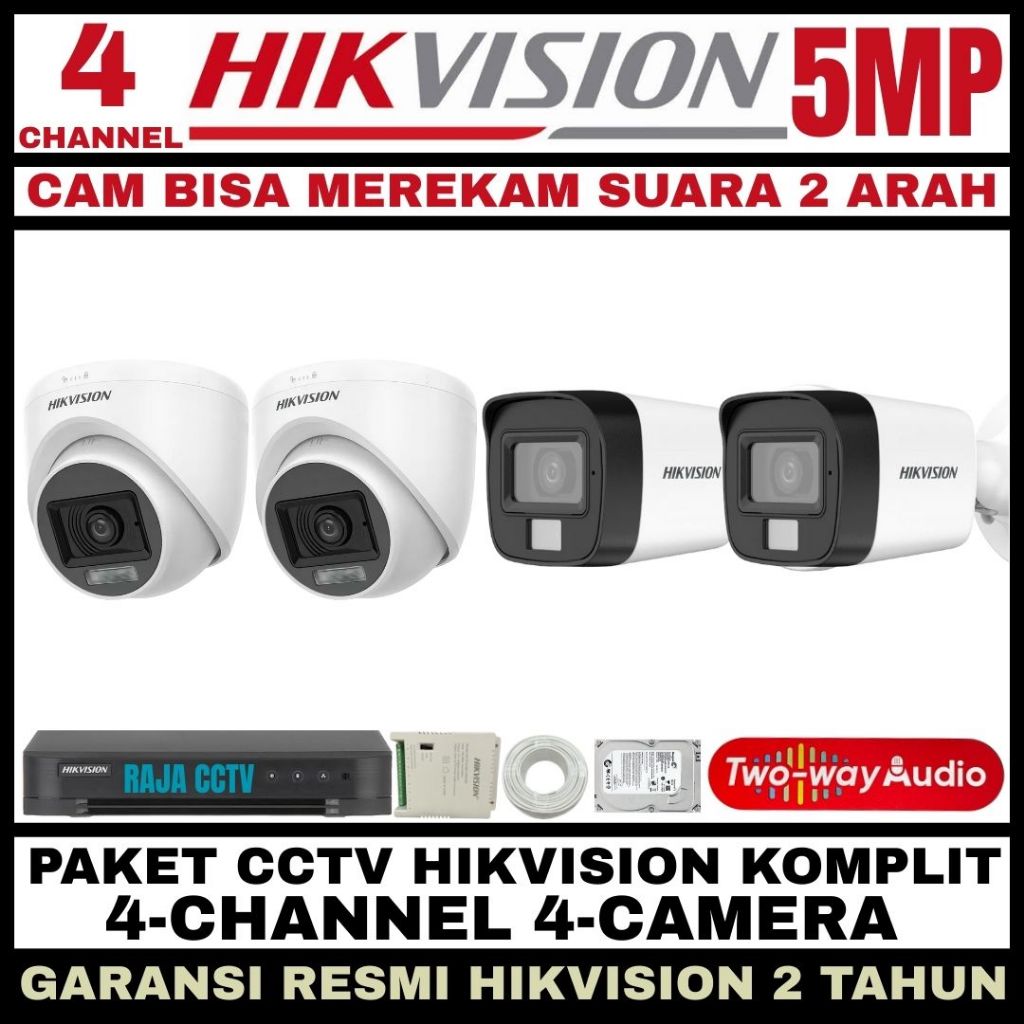 paket cctv hikvision 5mp 4 channel 4 camera two way audio 2 arah turbo hd kamera cctv