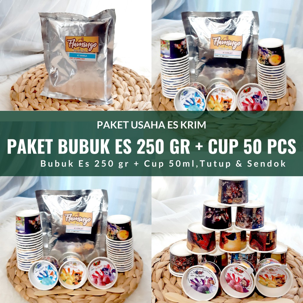 paket ice cream Murah - Harga Tepung Es Krim 250 - paket Es Krim Cup Rumahan 50 ml + bubuk