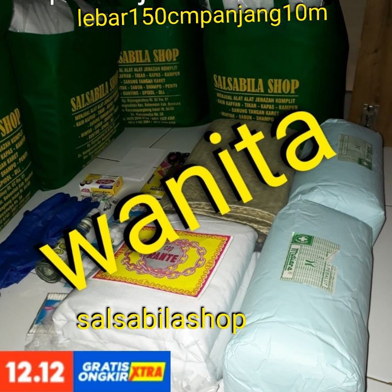 paket kain kafan kain mori super komplit super lengkap kain kafanuntuk jenazah wanita ukuranya pas jenazah pria ada lebihnyakomplit lebar 150cm p 10m
