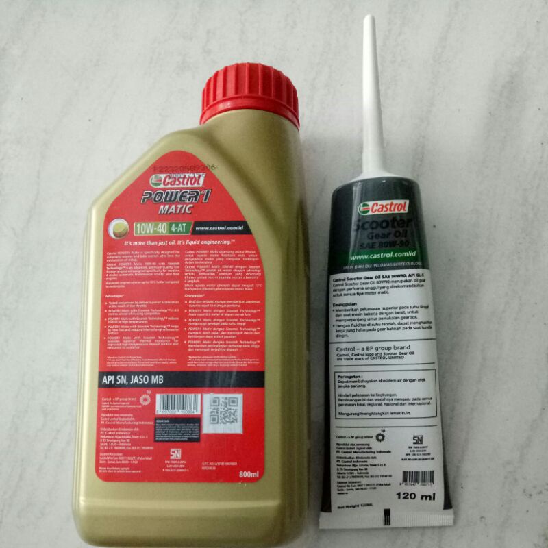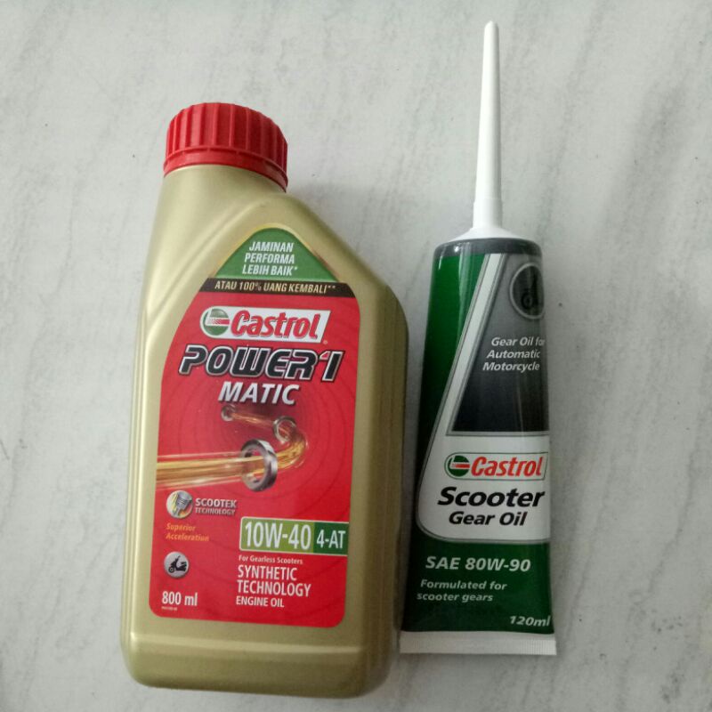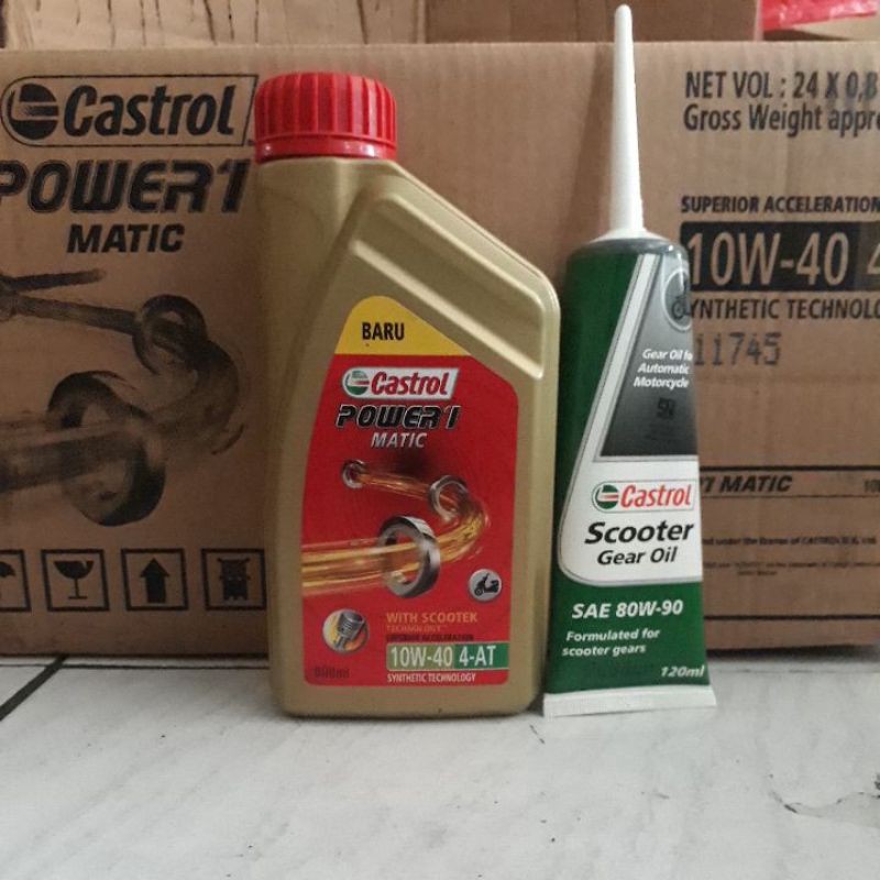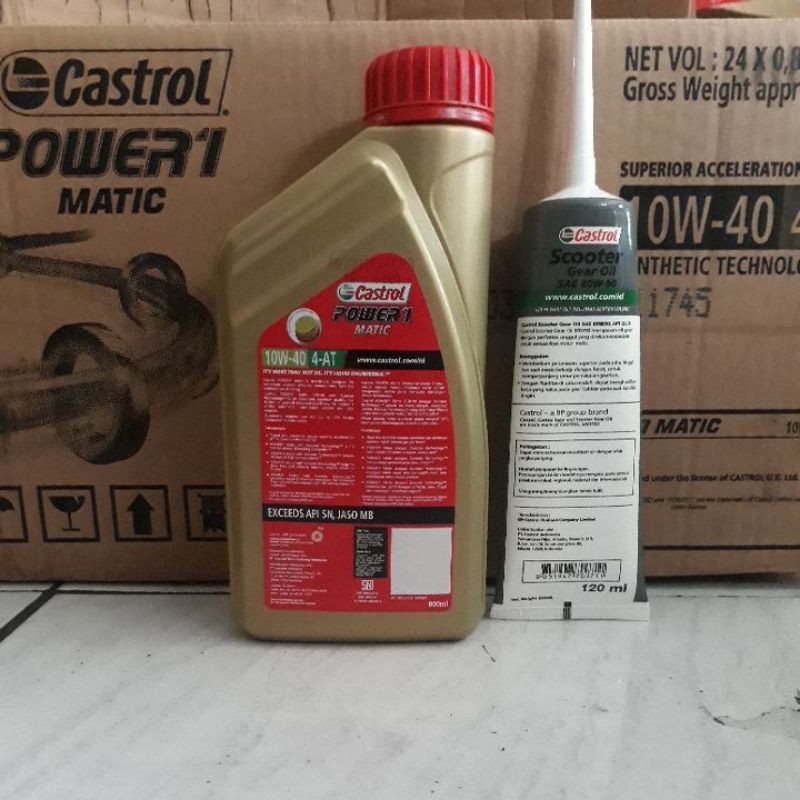 paket oli mesin motor matic f1 castrol power1 10w-40 matic 800ml,oli gear scooter 120ml(dijamin asli)