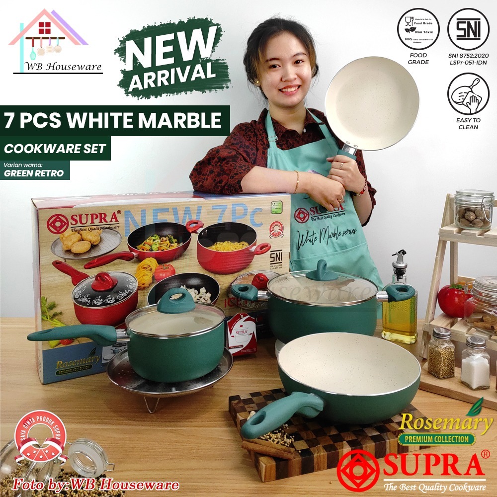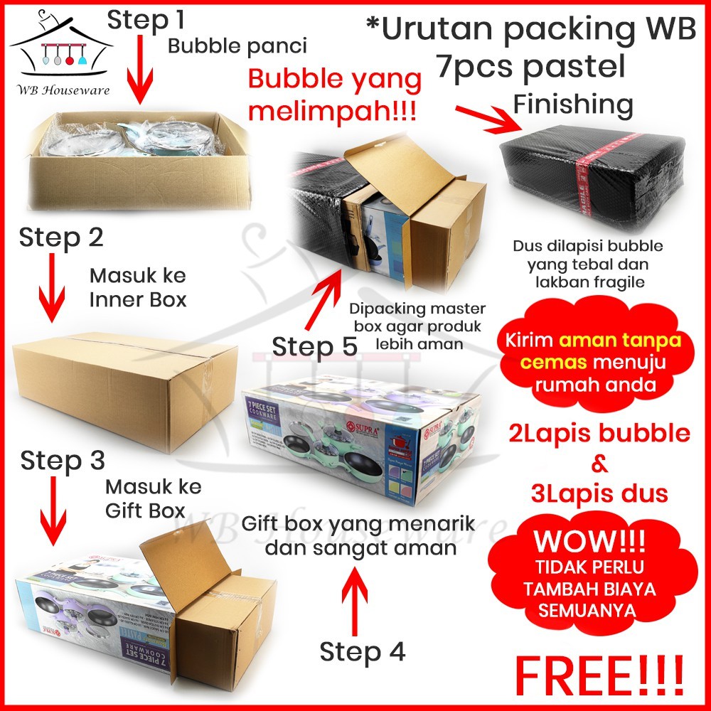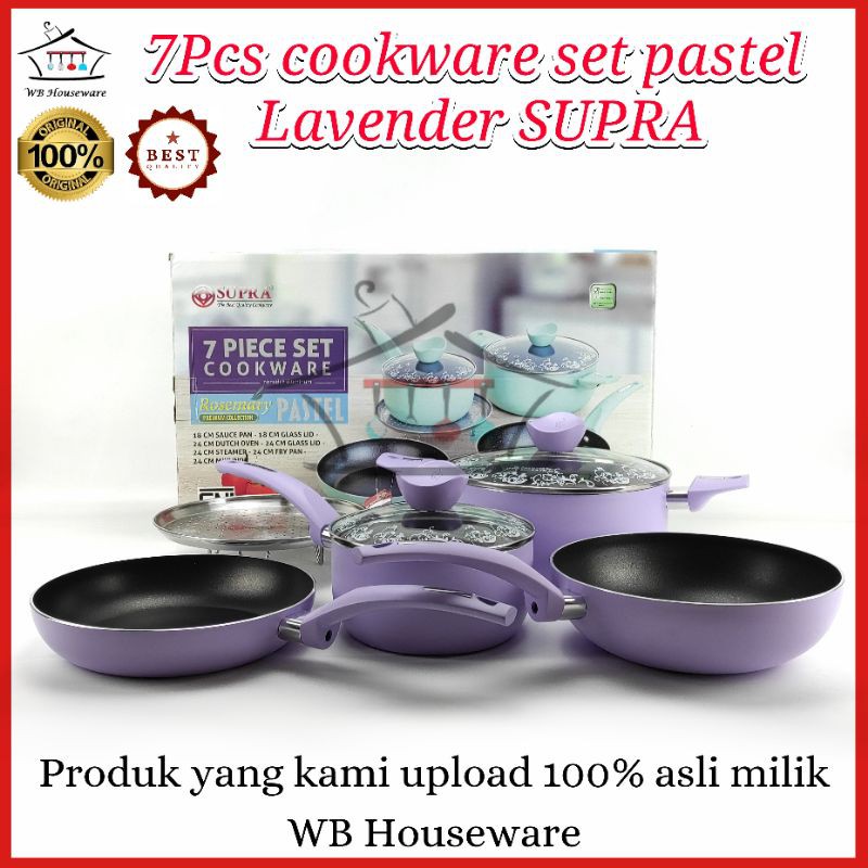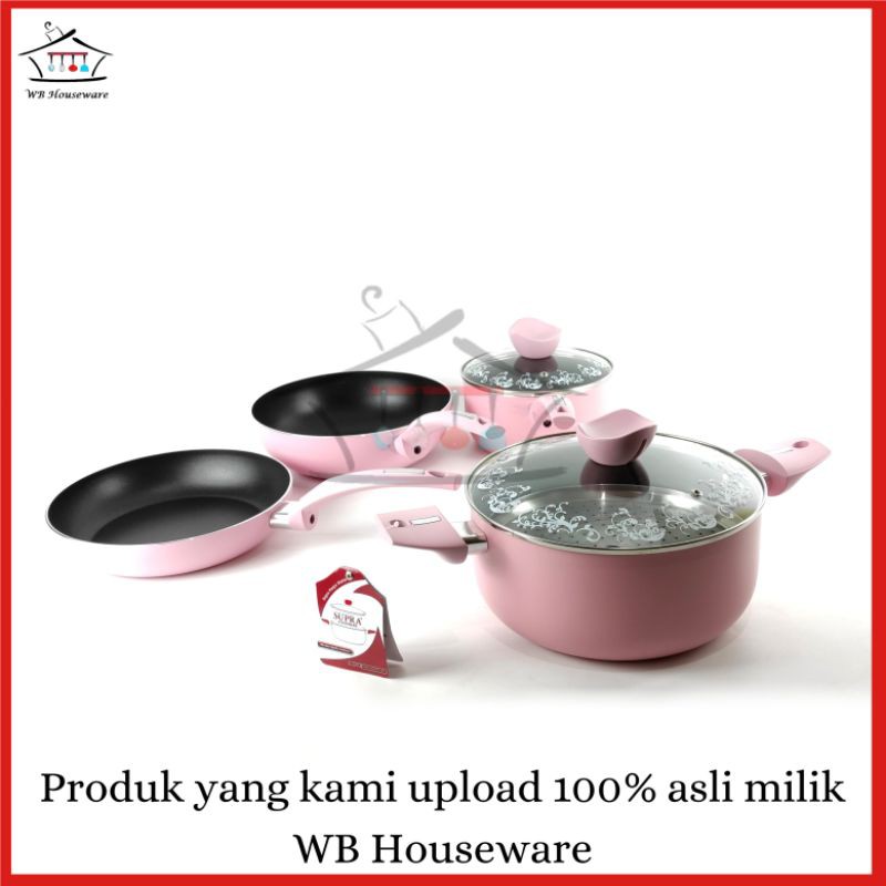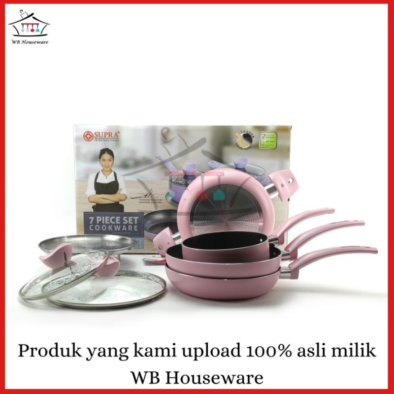 panci set / wajan anti lengket teflon / 7pcs cookware set pastel pink SUPRA
